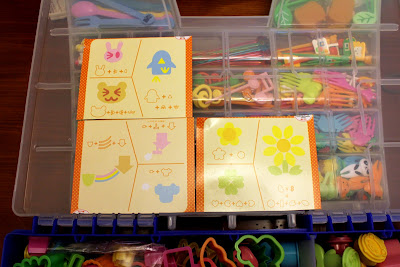 In this last picture you'll notice some cardboard cutouts. These came with the packaging in some of my decorative food cutters, and they are basically diagrams on how to make several different shapes with the small pieces, so I keep them in there for reference in the bottom tier. I swear, this is one of my best organizational purchases. It's worth double what the going rate is!